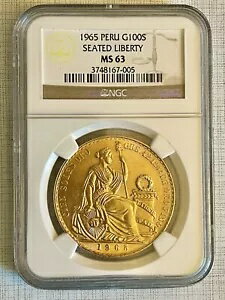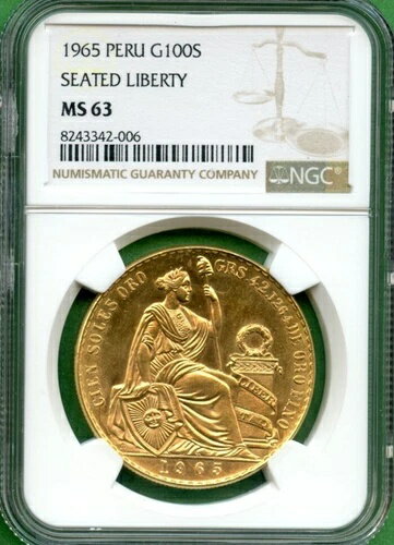 ペルー 1965 シーテッド リバティ 100 ソール ゴールド NGC MS63 SKU# 3031