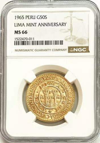 1965年 ペルー 50ソル ゴールド リマ ミント 記念コイン NGC ミント ステート 66