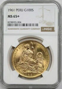 1961年 ペルー G100S NGC MS 65+Plus ゴールド 100ソル