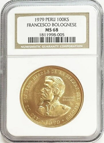1979年 ペルー ゴールド 1オンス フランシスコ・ボロネーゼ 英雄 10万ソル NGC ミント ステート 68