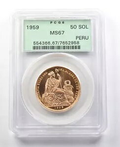 1959年 ペルー 50ソル ゴールド MS67 PCGS OGH *8849