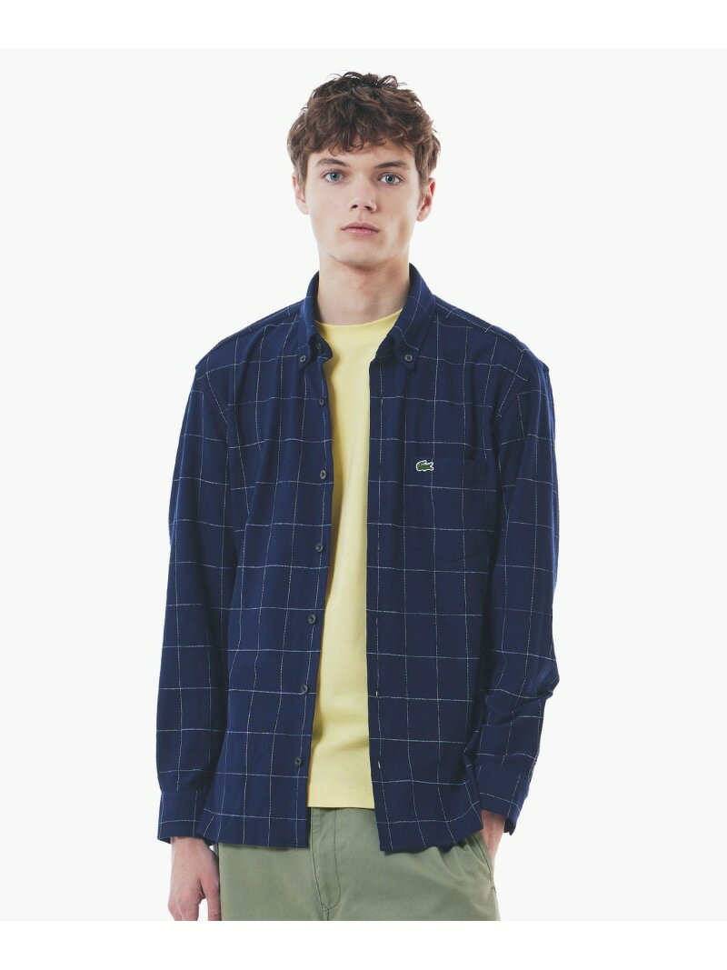【SALE/40%OFF】LACOSTE 2WAYストレッチ ウインドウペンチェックボタンダウンシャツ ラコステ トップス シャツ・ブラウス ネイビー ホワイト【送料無料】