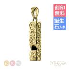 ハワイアンジュエリー ホイッスル 笛 ネックレス 刻印無料 誕生石入れ可 メンズ レディース K14ゴールド 金 40代 50代 30代 20代