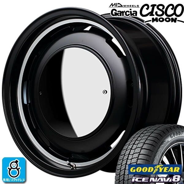 限定特価【2025年製】155/65R14 75Q グッドイヤー アイスナビ8 ICE NAVI8新品 スタッドレスタイヤ ホイール4本セットMID Wheel ガルシア シスコ ムーン14インチ 4.5J 4H100セミグロスブラックリムヴァーレイポリッシュ組込み済 バランス調整済