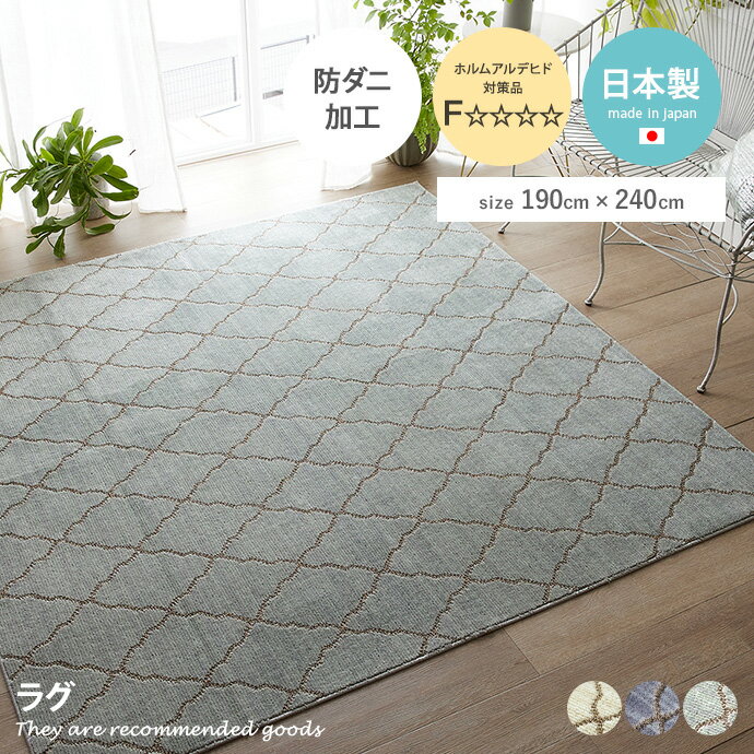 【クーポンで15%OFF! 3/1 0:00~23:59まで★】ラグ ラグマット マット カーペット 絨毯 四角 190×240 長方形 防ダニラグ ホットカーペット 日本製ラグ 幅190 人気 新生活 オシャレ お洒落 国産ラグ 床暖対応 滑り止め付 遊び毛防止 低ホルム