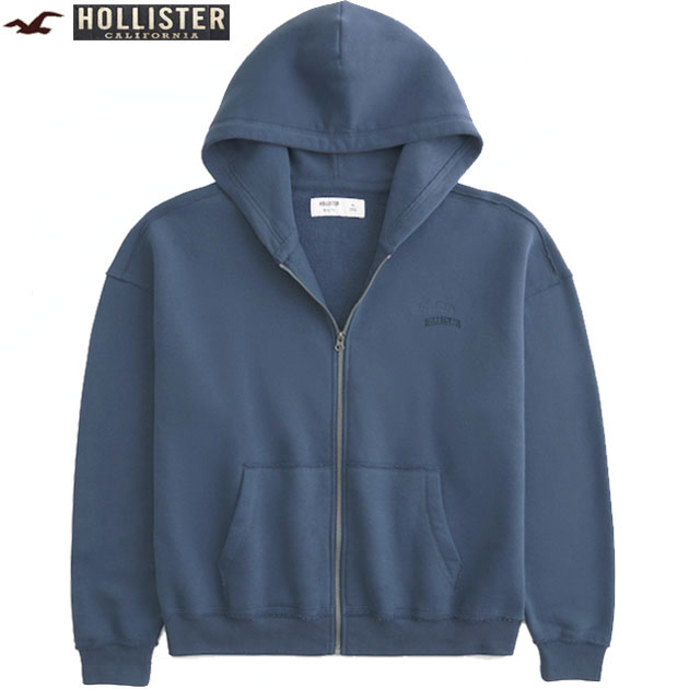 ホリスター パーカー 正規品 メンズ XXL(3L) 大きいサイズ 上質 ソフトフリース スウェット 裏起毛 ロゴ刺繍 ジップアップフーディー ドロップショルダー ライトアウター オーバーサイズ アメカジ 【ウォッシュドブルーネイビー】HOLLISTER 即日発送