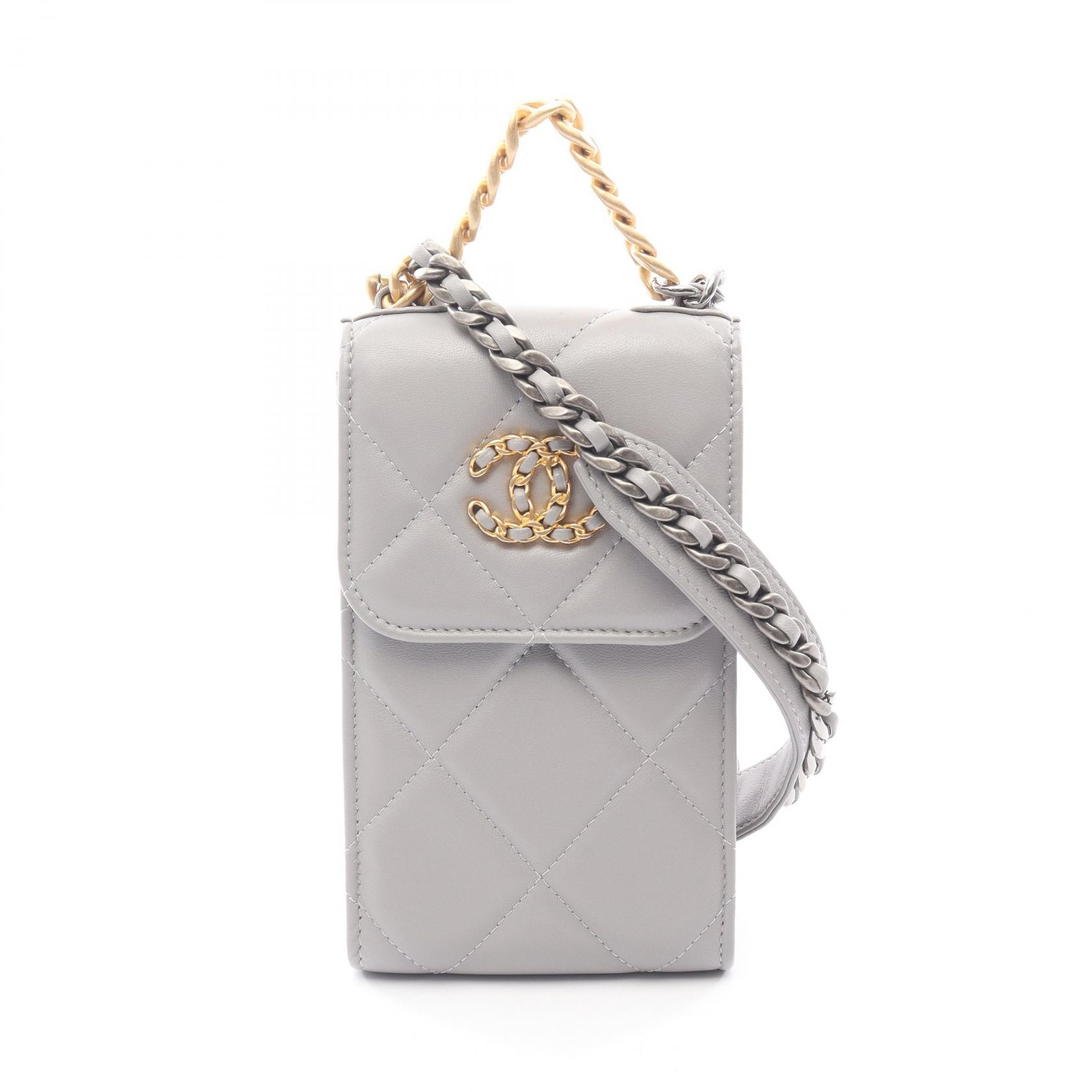 ≪5%OFF&まとめ買い対象≫シャネル CHANEL CHANEL19 マトラッセ フォンホルダー ショルダーバッグ バッグ レザー レディース グレー系 【中古】