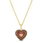 【並行輸入品】LeVian 1/5カラット ホワイト&チョコレートダイヤモンド エナメルハートペンダントネックレス レディース 14Kイエローゴ
