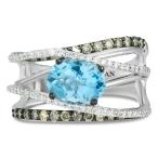 ル ヴァン レディース リング アクセサリー Aquamarine (3/4 ct. t.w.) and Chocolate Diamonds® (3/4 ct. t.w.) in 14k White Gold Aquamarine