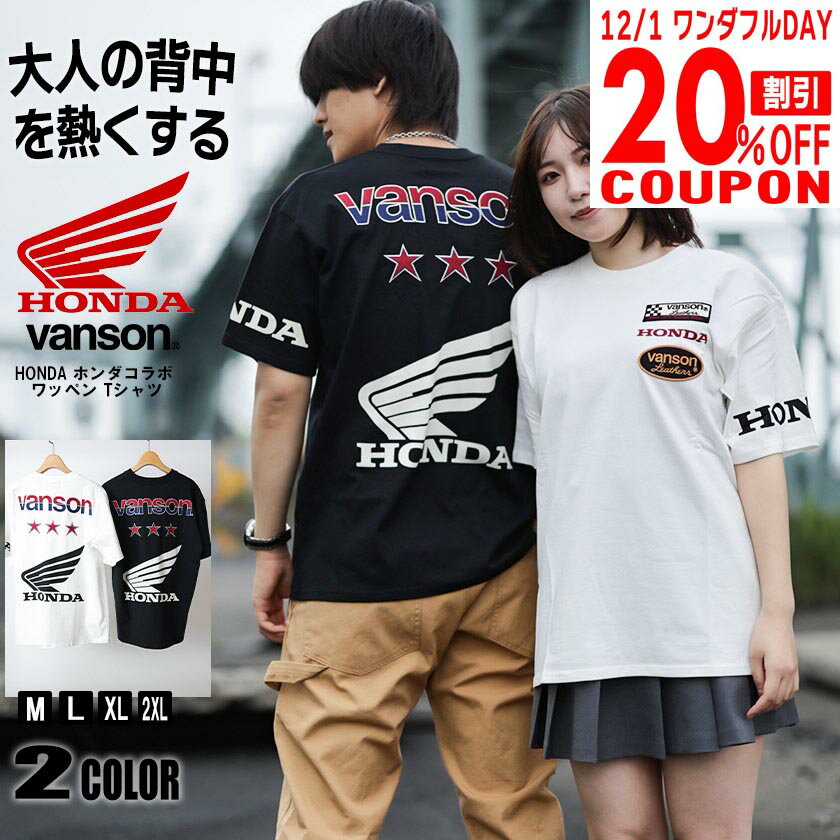 【告知 12/1 激熱20%OFFクーポン!】VANSON x HONDA 刺繍 半袖 Tシャツ メンズ ヘビーオンス Tシャツ バイカー アメカジ カジュアル おしゃれ 綿100 トップス ホンダ バンソン hrv-2508