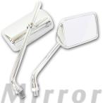 汎用 メッキ スクエアミラー 角型ミラー 取り付けネジ10mm 8mm ハーレー用ステー 正ネジ 逆ネジアダプター付き