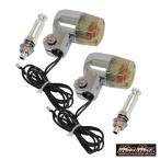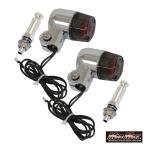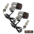 週末セール!!汎用 丸形ミニヨーロピアンウインカー シルバー/スモーク M10*60mmアルミ製 取付ステー付 2個セット