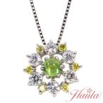 デマントイドガーネット ネックレス 0.24ct プラチナ PT900/PT850 一粒プチ イエローダイヤ取り巻き /緑(グリーン)/セレクトブランド・新品/届10/1点もの