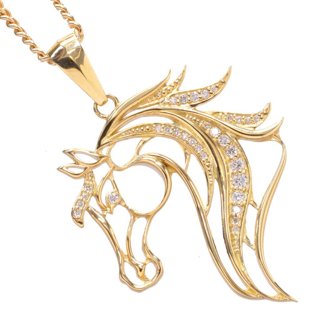 【01:59終了★10%OFFクーポン】ネックレス メンズ K18 メンズネックレス 18金 イエローゴールド ダイヤモンド 馬 ホースモチーフ 日本製 刻印入り 鑑別書付き プレゼント ギフト