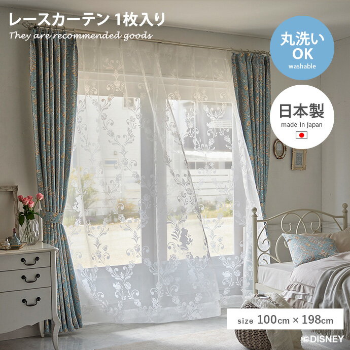 【クーポンで14%OFF! 1/13 0:00~23:59まで★】ボイルカーテン 100×198 ディズニー Disny 美女と野獣 ビューティー ビースト ベル カーテン レース 洗える ウォッシャブル 子供部屋 キッズ 日本製 メイドインジャパン disneyhome 薄地