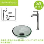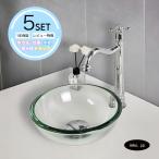 手洗い器 洗面台 おしゃれ 洗面ボウル シンク 置き型 小さい 小さめ コンパクト ガラス セット 5点 交換 リフォーム 洗面所 トイレ DIY 単水栓 直径25cm B-0406017HJset172