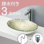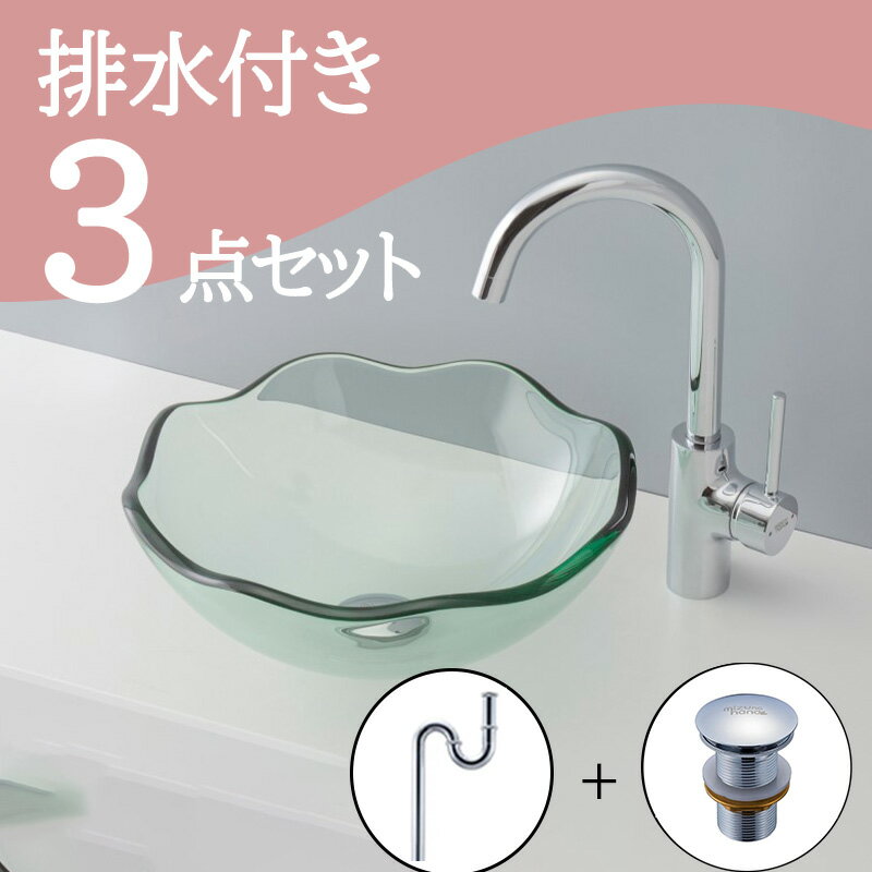 お得セット 【送料無料】 置き型 おしゃれ 洗面ボウル セット set 水栓 蛇口 排水トラップ 排水金具 mizunohana B247 洗面ボール 洗面台 洗面所 手洗い ベッセル diy 丸型 ガラス クリア シンプル きれい インテリア オーバーフローなし 幅350mm 奥行350mm 高さ130mm