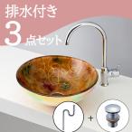 排水金具・トラップ付き mizunohana 置き型洗面ボウル カラーガラス03 B142 手洗い器 ガラス おしゃれ シンプル モダン カラフル 個性的 高級感