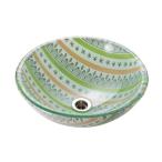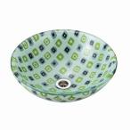 洗面ボウル おしゃれ ガラス レトロボーダー ガラスボウル 置き型 埋め込み Mサイズ 手洗い器 φ355×125mm