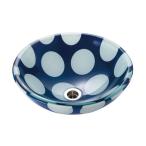 洗面ボウル おしゃれ ガラス ポルカ 青 水玉 ガラスボウル 置き型 埋め込み Mサイズ 手洗い器 φ355×125mm