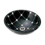 洗面ボウル おしゃれ ガラス ドット 水玉 黒 白 ガラスボウル 置き型 埋め込み Mサイズ 手洗い器 φ355×125mm