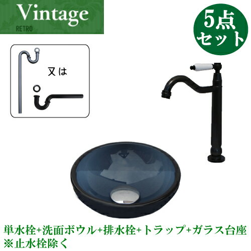 お得セット 【送料無料】 置き型 洗面ボウル セット おしゃれ set 水栓 蛇口 排水トラップ 排水金具 mizunohana B154 洗面ボール 洗面台 洗面所 手洗い ベッセル ガラス クール 青 ブルー ブラック カラー 綺麗 きれい 上品 高級感 水回り インテリア オーバーフローなし
