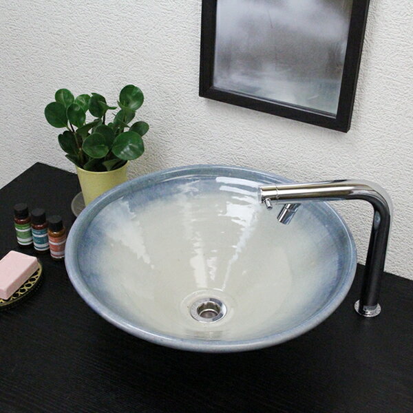 【12月1日限定11%OFFクーポン】信楽焼 和風 おしゃれ ブルーガラス手洗い鉢 洗面鉢 お洒落 洗面器 手洗器 手洗鉢 洗面ボール 洗面シンク 陶器 洗面台 手洗い 鉢洗面ボウル 洗面陶器 tr-3036