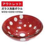 【アウトレット】ガラス洗面ボウル 小型 おしゃれ 赤い水玉 トイレ W310×D310×H110 INK-0406006HO