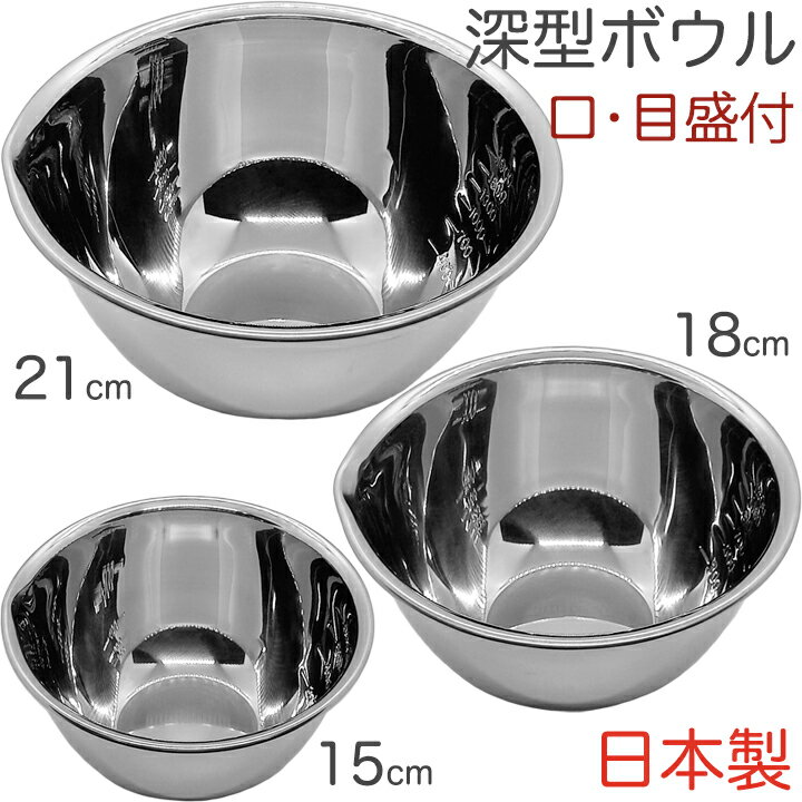 オリジナルセット 深型ボウル3点セットA 口・目盛付 15cm/18cm/21cm BR2-240102 (日本製・ボール・目盛り付き・セット・藤井器物)