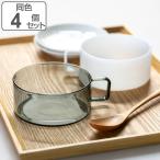 スープカップ 390ml FUFU フフ 耐熱ガラス 同色4個セット ( 食洗機対応 電子レンジ対応 スープボウル スープマグ 食器 耐熱 アイス ホット ボウル カップ マグ スープ ポタージュ 持ち手付き おしゃれ モノトーン ) 【3980円以上送料無料】