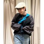トレーナー スウェット メンズフェイクレザーパッチスウェット メンズ