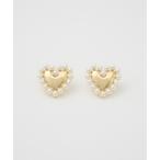 イヤリング フェイクパールフレームハートイヤリング レディース