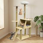 キャットタワー 布製 木製 140cm 宇宙船ボウル 多頭飼い スリム 大型猫 爪とぎ ハウス付き ナチュラル 据え置き 大型猫 中型猫 爪とぎ付き