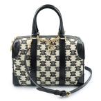(未使用 展示品)CELINE セリーヌ 193652CS8 トリオンフ キャンバス 刺繍 スモール ハンド ボストンバッグ レザー ブラック ショルダー ハンドバッグ