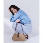 ボストンバッグ チャーム付き横長ベルトハンドルバッグ レディース