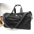 プラダ s付ボストンバッグ大 三角プレート ナイロン革黒 トラベル 旅行用ハンドバッグ 美品@56