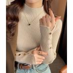 ニット セーター 袖口ボタンハイネックリブニット レディース