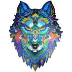 ジグソーパズル 木製 オオカミ カラフル ユニーク ピースが動物 神秘的