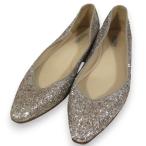 良品 BOTTEGA VENETA ボッテガヴェネタ グリッター ポインテッドトゥ フラットパンプス サイズ38 約25cm シルバーグレー レディース 古着 中古