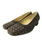 ボッテガヴェネタ BOTTEGA VENETA パンプス シューズ ローヒール イントレチャート スエード レザー 35.5 22.5cm 茶 ブラウン
