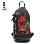 ボディバッグ 絡繰魂 刺繍 鞄 カバン 和柄 ユニセックス からくりだましい メンズ(紅龍ブラック黒) 253904