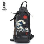 ボディバッグ 絡繰魂 刺繍 鞄 カバン 和柄 ユニセックス からくりだましい メンズ(神奈川沖浪裏 ブラック黒) 253904