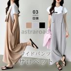 サロペット オールインワン パンツ レディース ワイドパンツ オーバーオール ワイド きれいめ ゆったり 大きいサイズ 体型カバー おしゃれ ガウチョパンツ