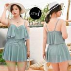 水着 レディース ワンピース 体型カバー 大きいサイズ オトナ女子 オールインワン キャミソール ワイヤー