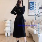 ワンピース レディース 秋 春 ロング丈 長袖 Aライン シンプル 無地 着痩せ 体型カバー 着回し力抜群 きれいめ ボディライン 肌触りが良い