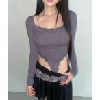 キャミソール Y2K レーススクエアネック ボディスーツ