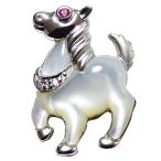 ブローチ 馬 ホース ピンズ うま ラペルピン 白蝶貝 ルビー ダイヤモンド k18 ホワイトゴールド 送料無料 プレゼント ギフト ご褒美 自分買い pu