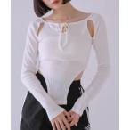 tシャツ カッティング リボン トップス ボディスーツ 長袖 カットソー トップス カットアウト リボン レディース