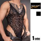 DEEP NOVA/ディープノバ ブラック フラワー ボタニカル レース メッシュ スケスケ ボディスーツ 透け 男性下着 エレガント