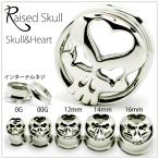 拡張ピアス 14mm Skull&Heart Raised ハイポリッシュ インターナル ダブルフレア ボディピアス